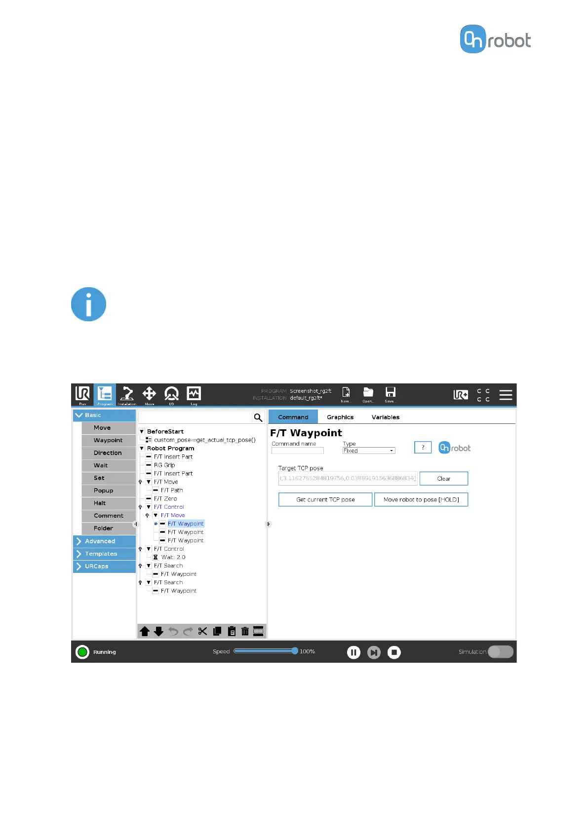 The F/T Waypoint command is used together with the F/T Move or F/T Search command,