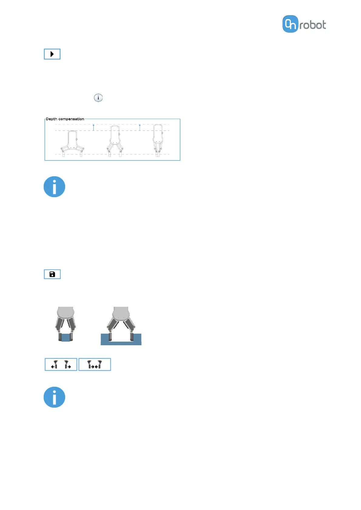 Depth compensation: During closing and opening the gripper, the robot moves to