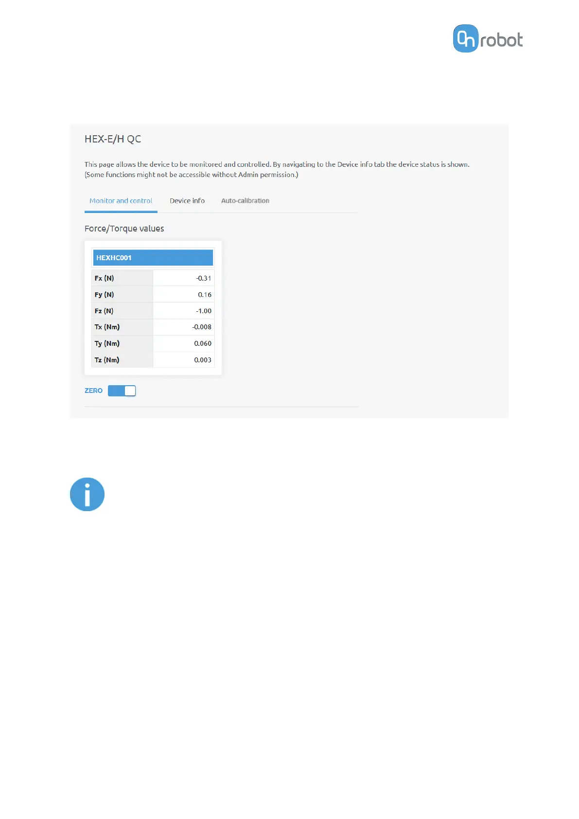 The force and torque values (Fx,Fy,Fz and Tx,Ty,Tz) are shown in N/Nm.