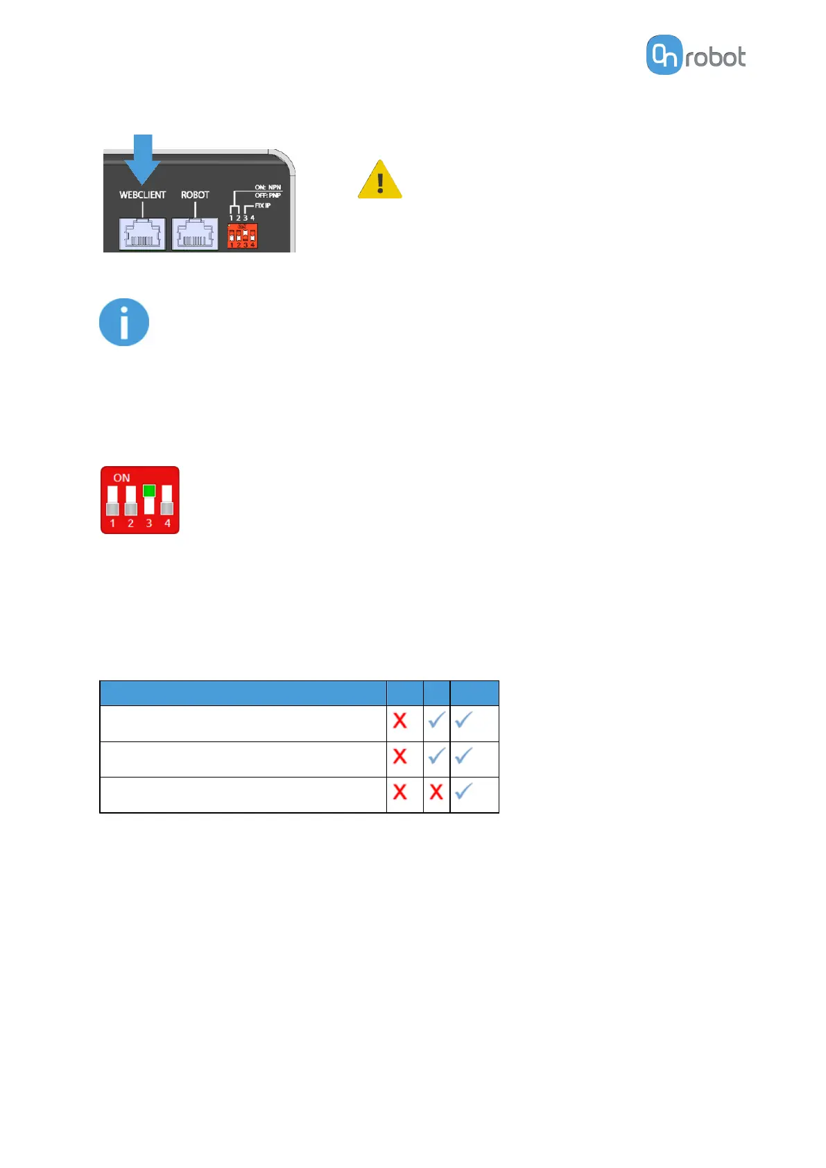 Set the DIP switch 3 to ON and the DIP switch 4 to OFF position.