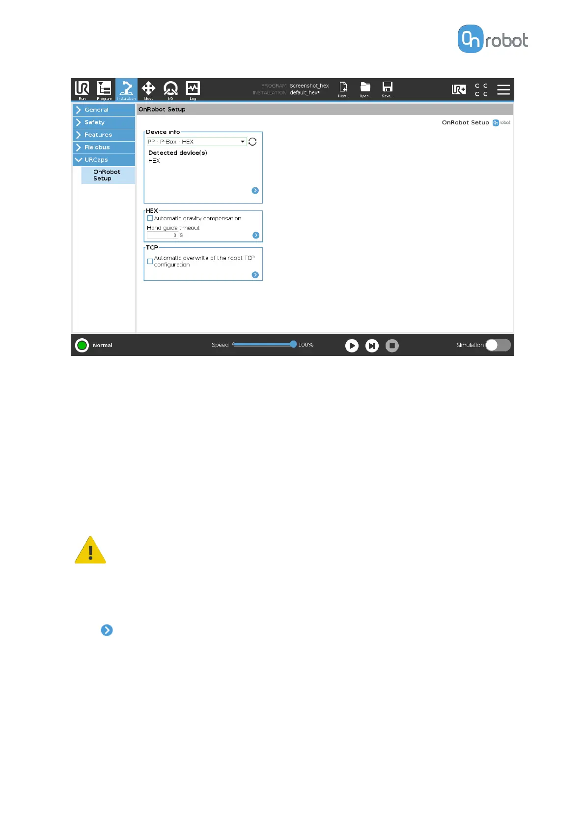 Automatic gravity compensation: If enabled, the weight of the tool and the part will be