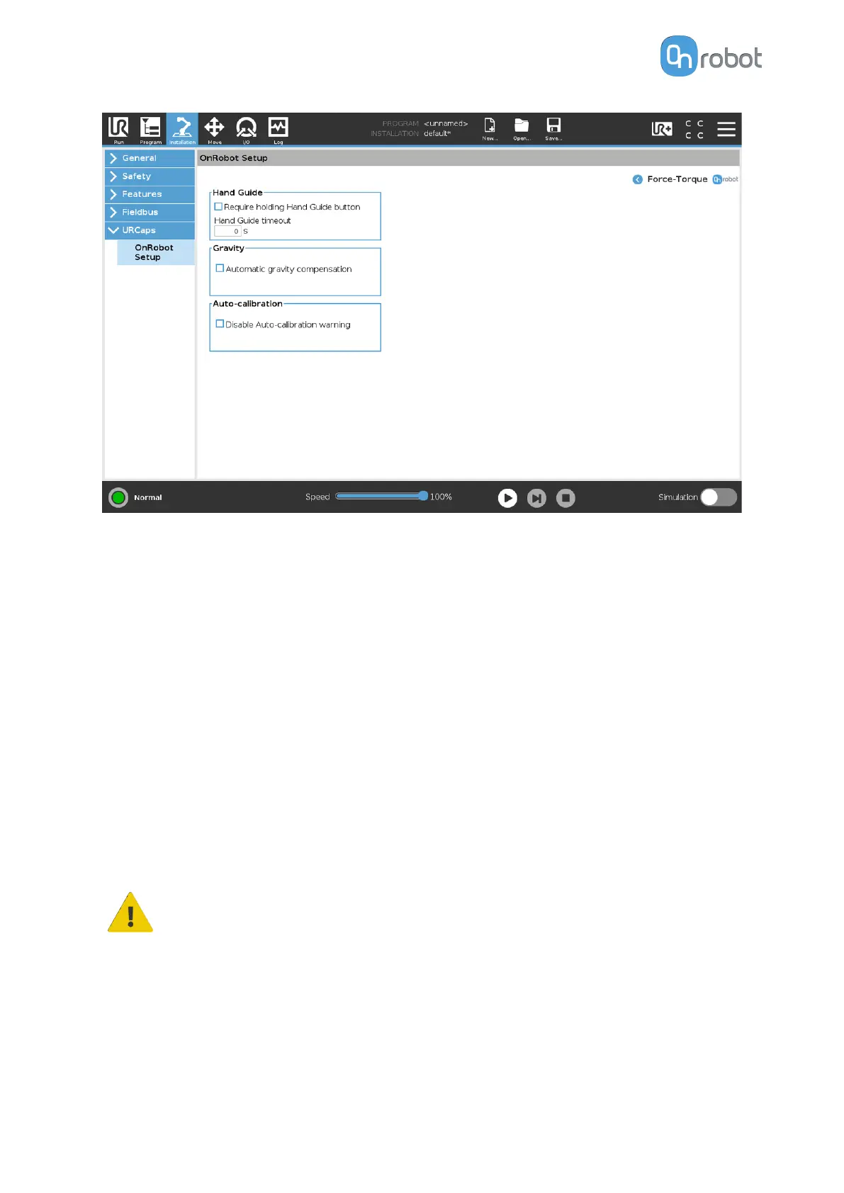 Automatic gravity compensation: If enabled, the weight of the tool and the part will be