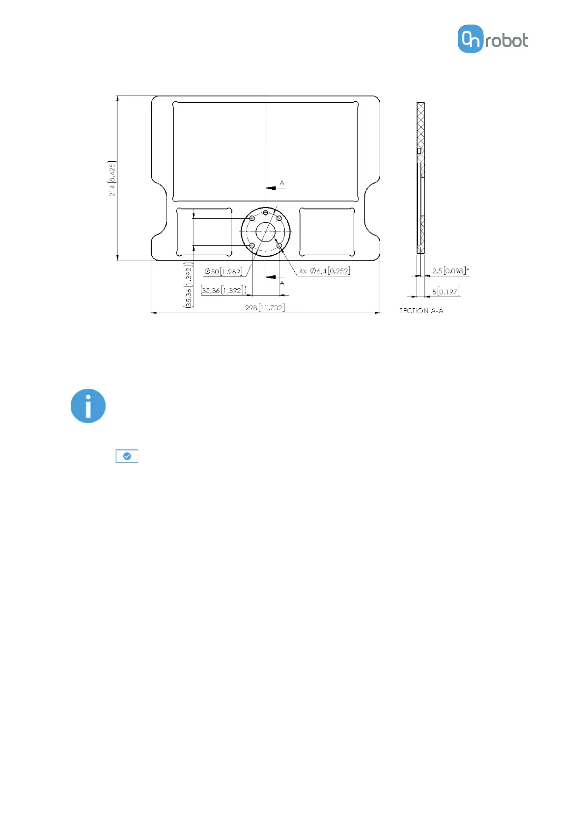 Attach the calibration plate to the robot tool flange using the provided M6x12 screws.