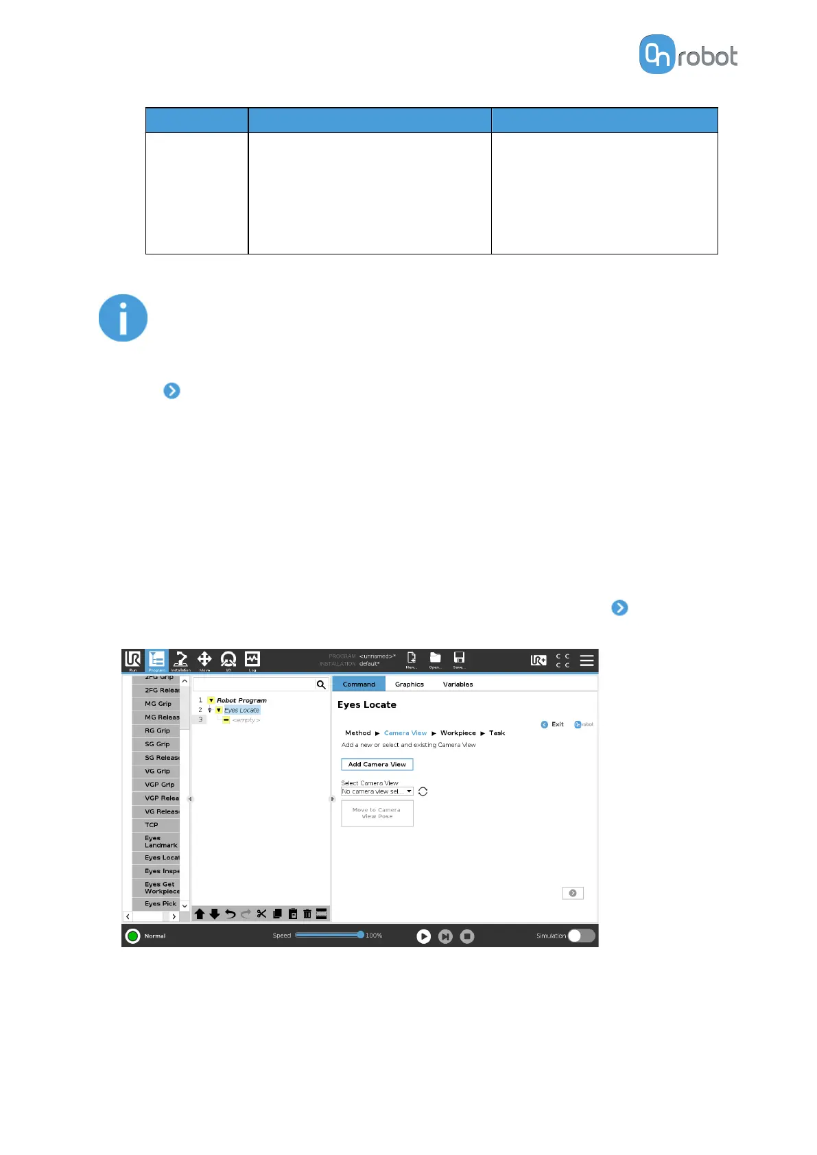 workpieces to be detected. Eyes is robust to light changes, but it is advisable to limit lighting