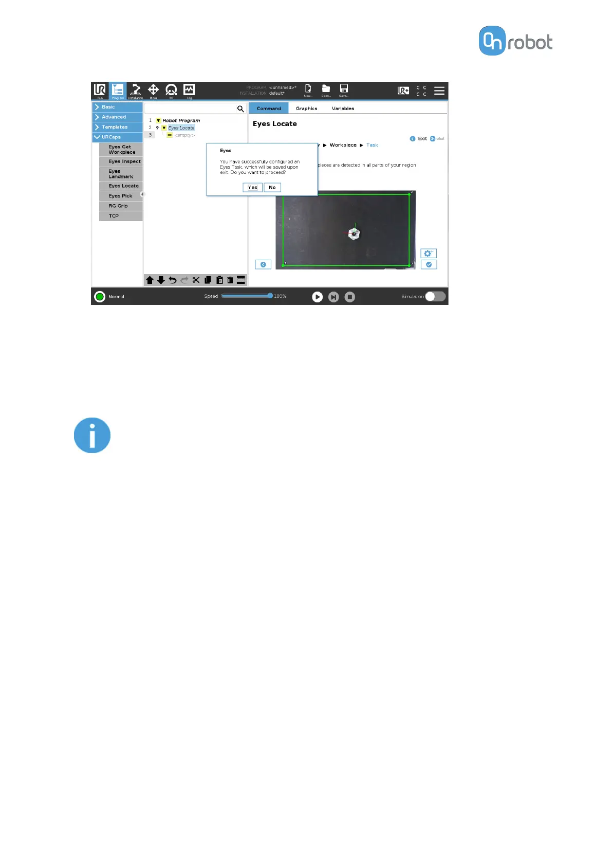 robot pose. Before using the Eyes Locate it is required to move the robot to