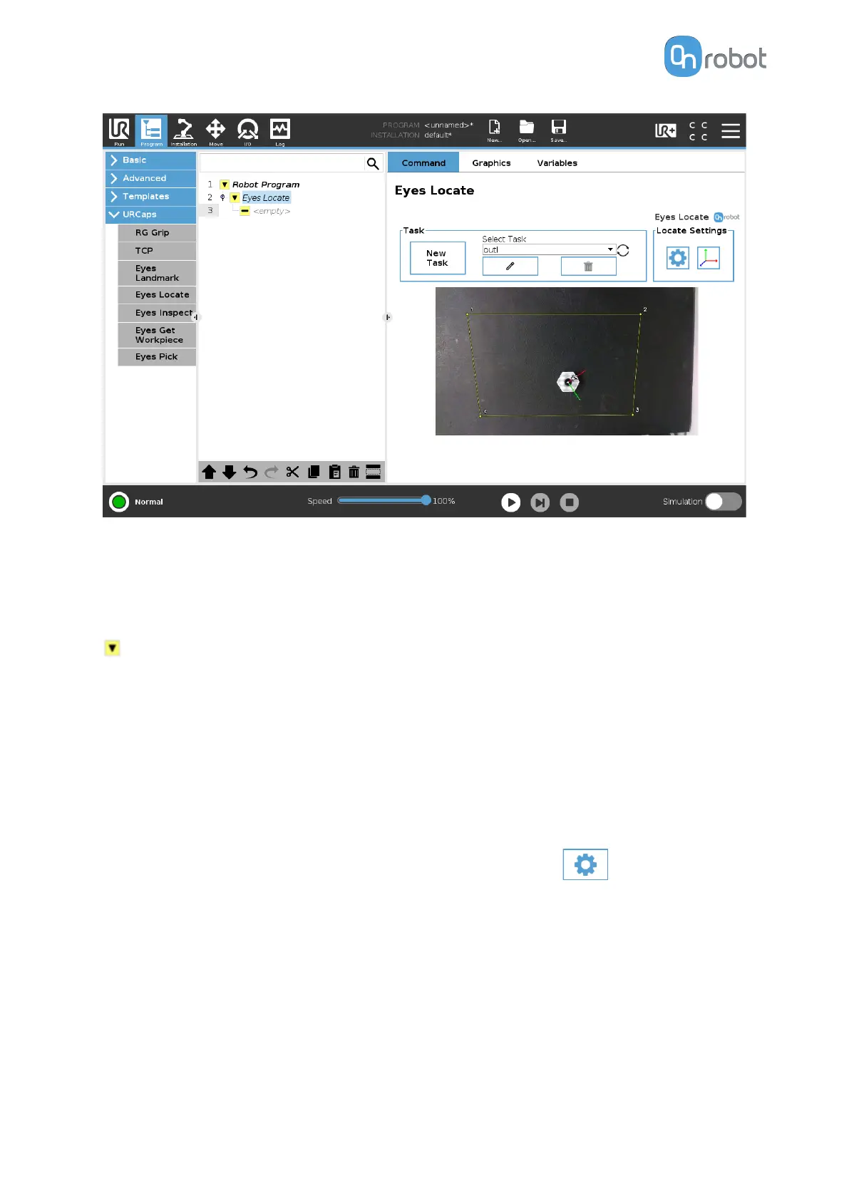 Here the live video feed of the Eyes will be shown. Detected workpieces from the selected