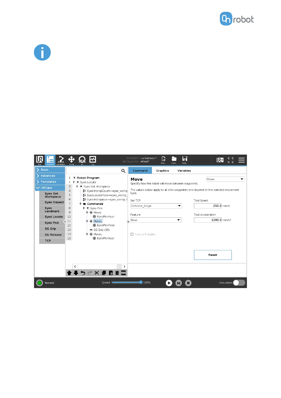 If an OnRobot gripper is connected, the Eyes Move will add the given gripper's