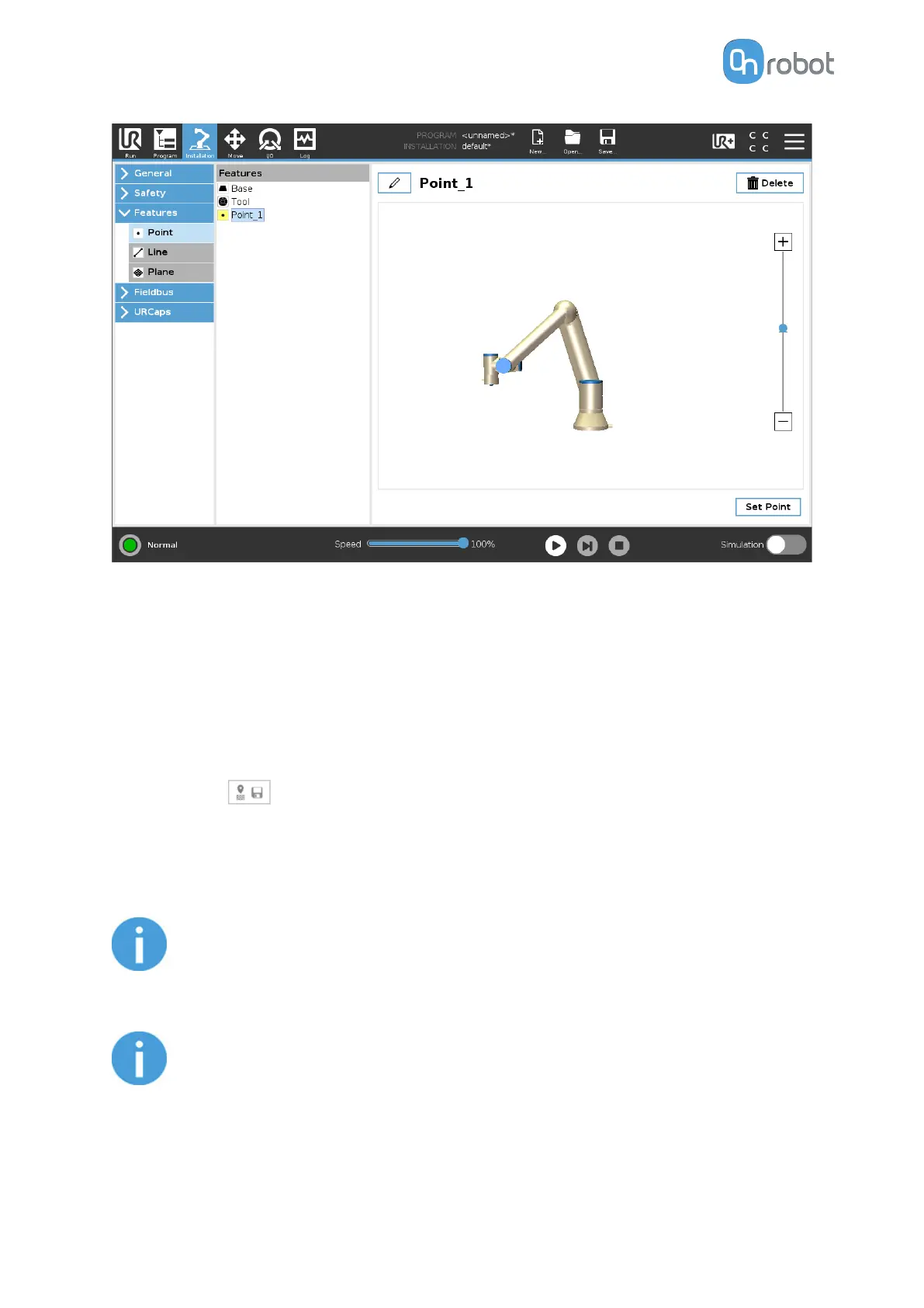 The TCP of the robot is set to Use tool flange on eSeries or Ignore Active TCP