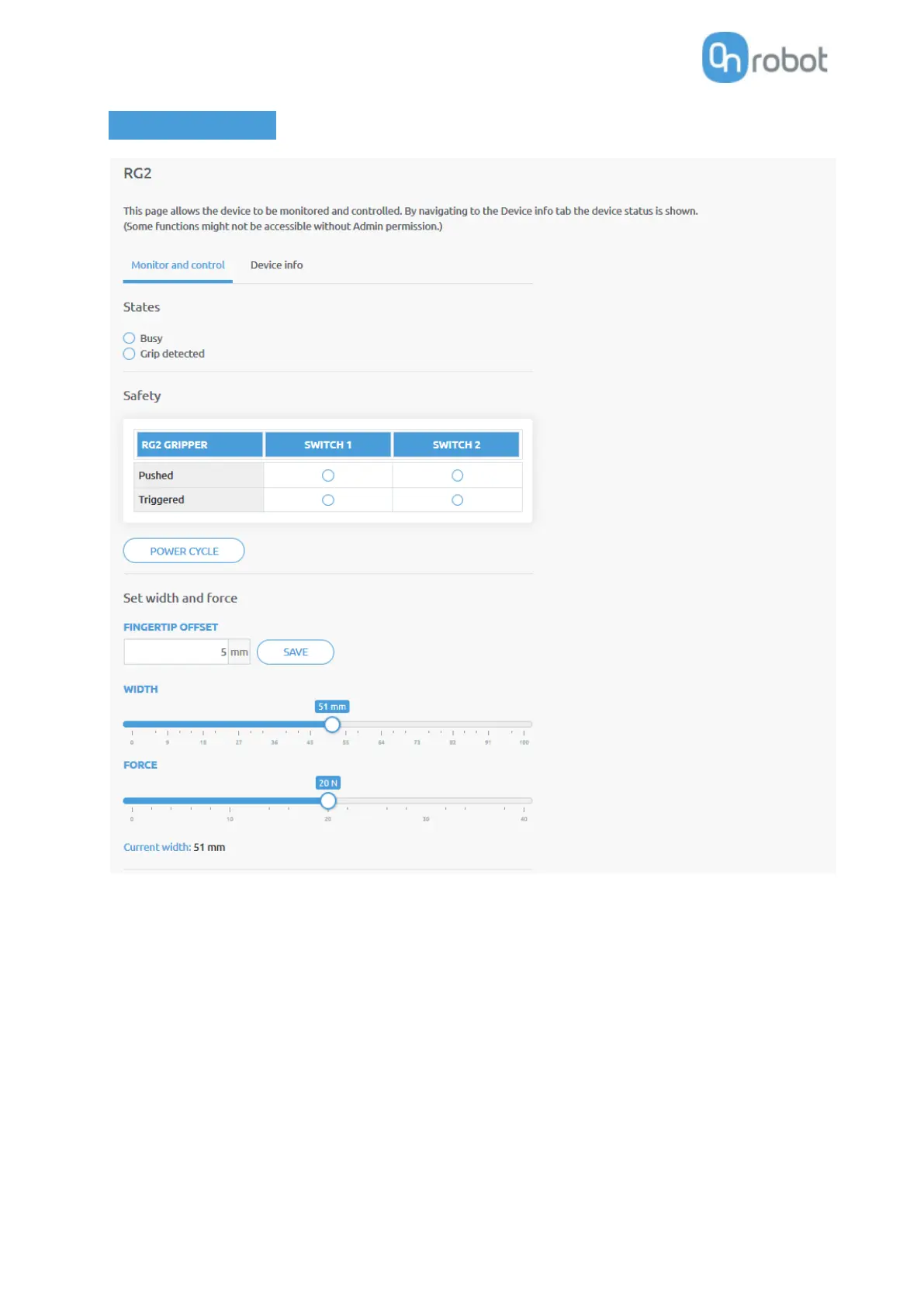 Triggered - the safety switch 1/2 has been activated and gripper is stopped.