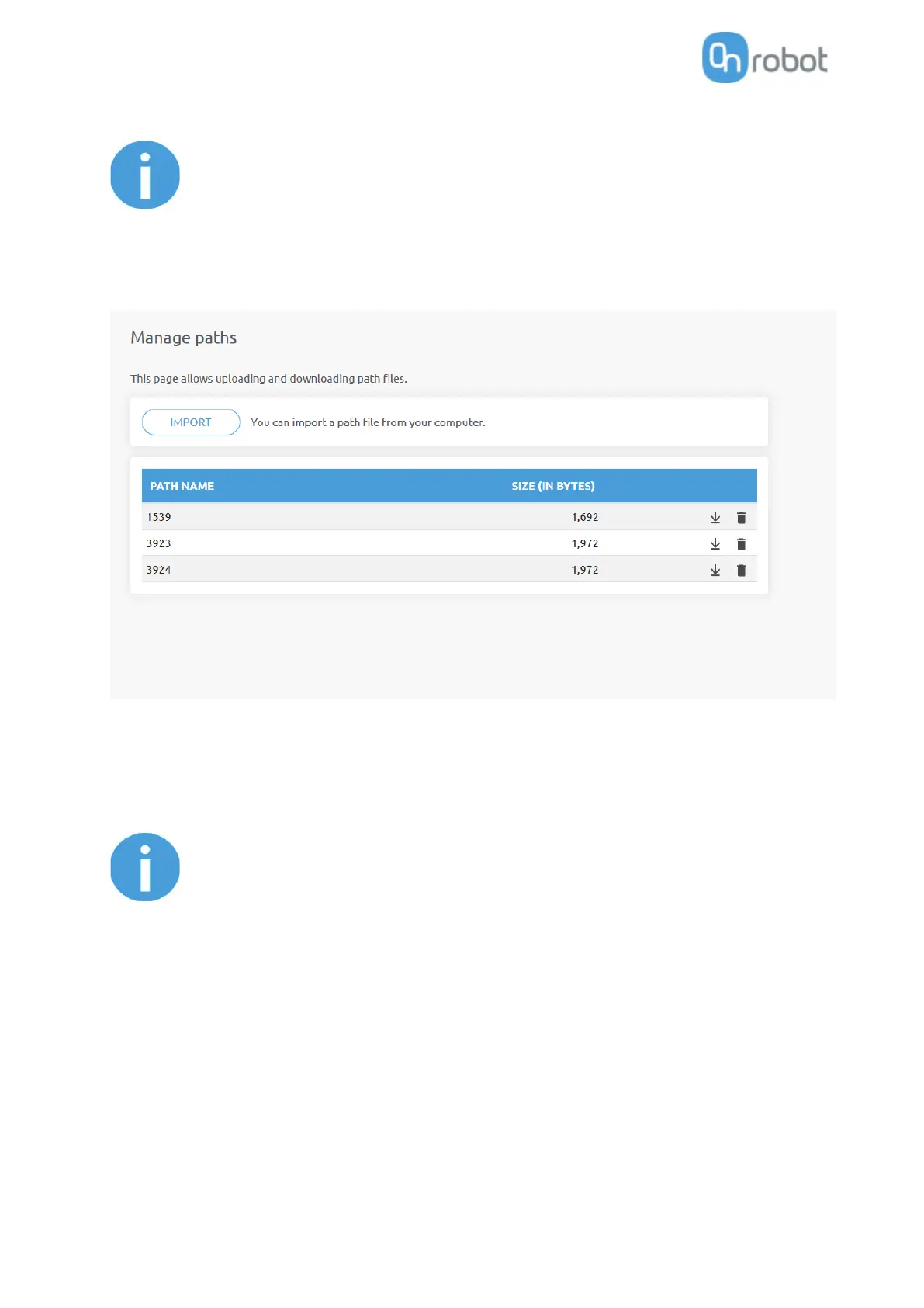 This page can be used to import, export, and delete the previously recorded paths. In this way a Path can
