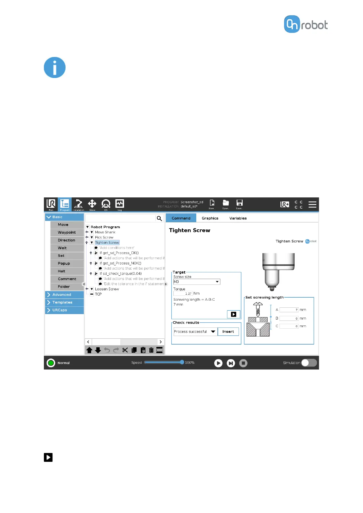 When the Tighten Screw command is executed, the screwdriver will move and rotate the