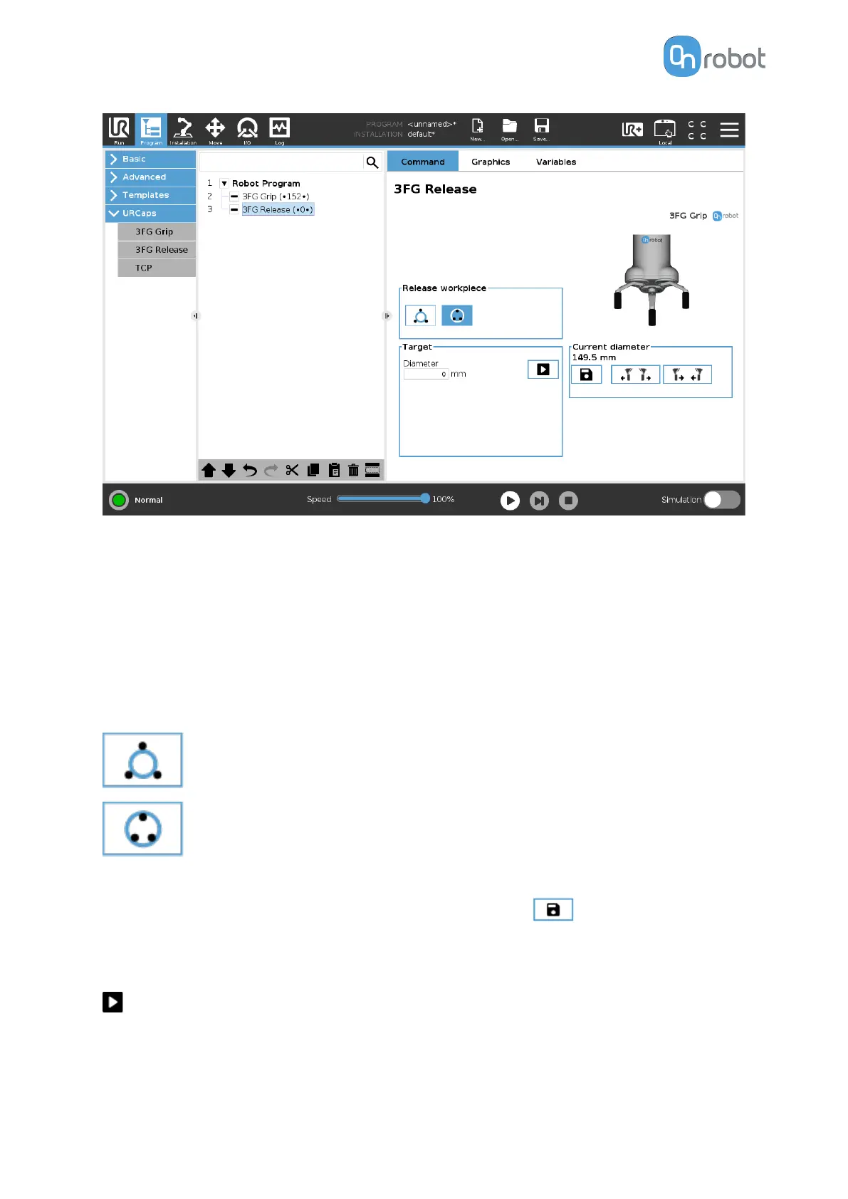 (recommended) or by typing it in manually. The external gripper diameter will be shown if