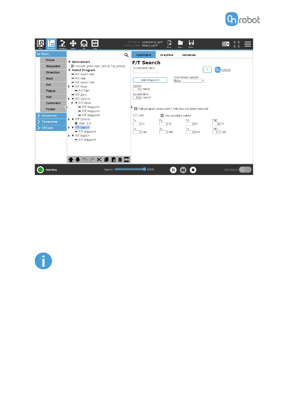 Alternatively, F/T Waypoint or F/T Path could be added as a child node of the F/T Search