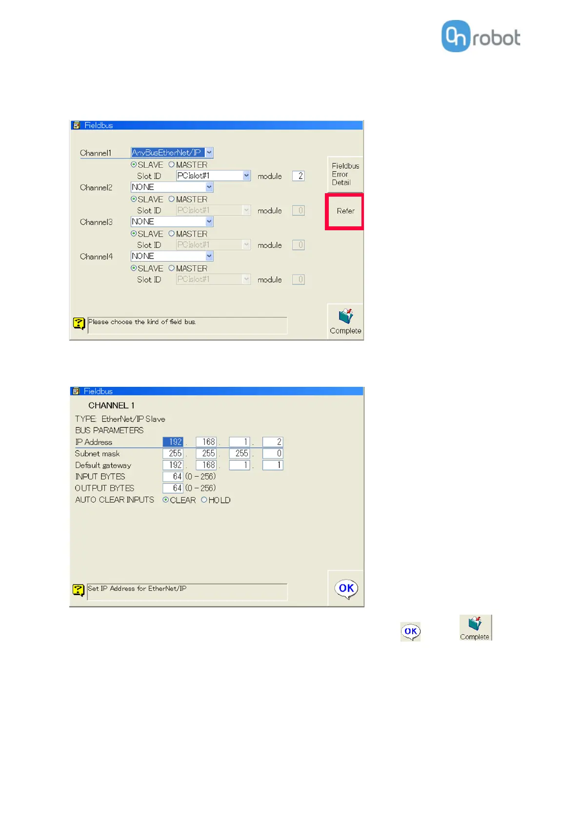 Then press Refer button to set the robot IP address.