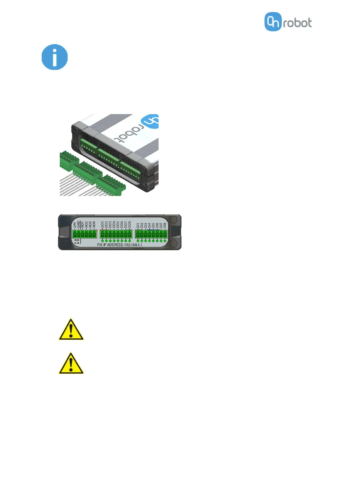 If some of the DO1-8 or DI1-8 wires will not be connected, make sure to