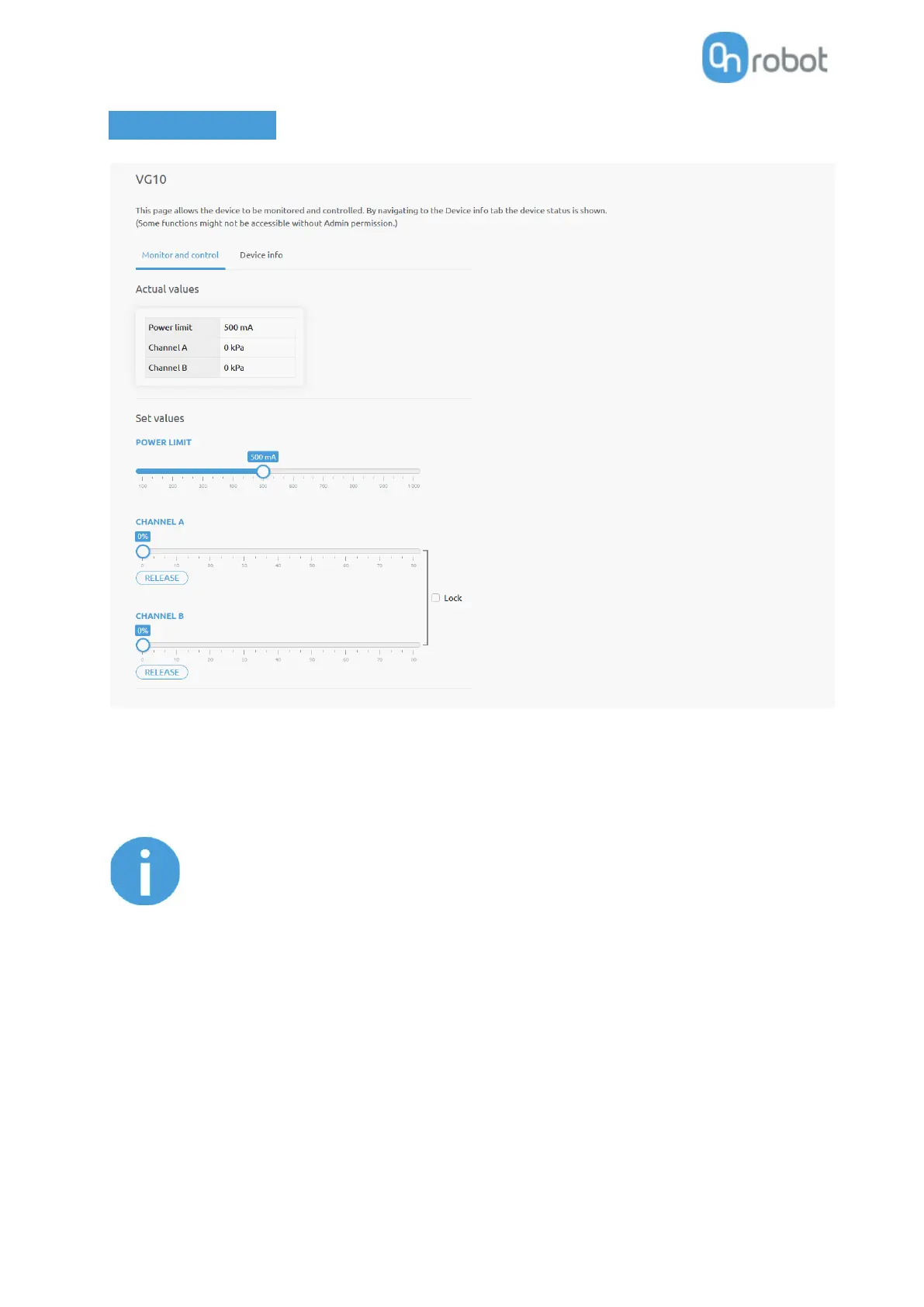 The Channel A and Channel B vacuum level can be set individually or in tandem by checking the Lock