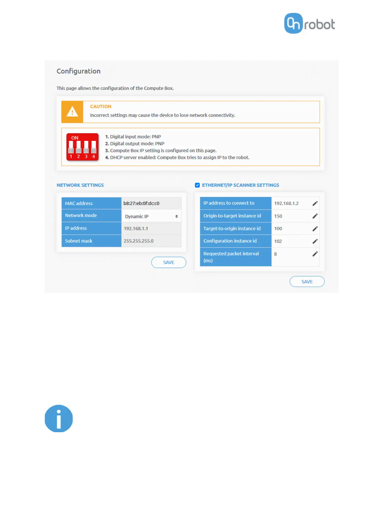 • IP address to connect to: Robot IP address (if default values are used enter 192.168.1.2)