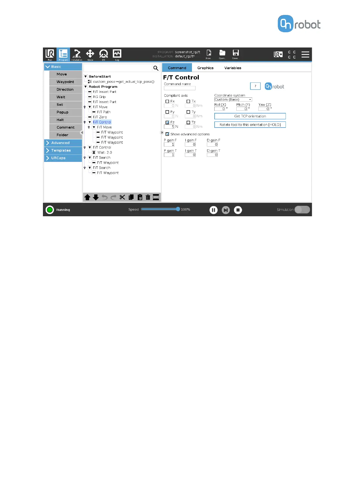 measured by the sensor, compared to the values set by the F/T Control command, and