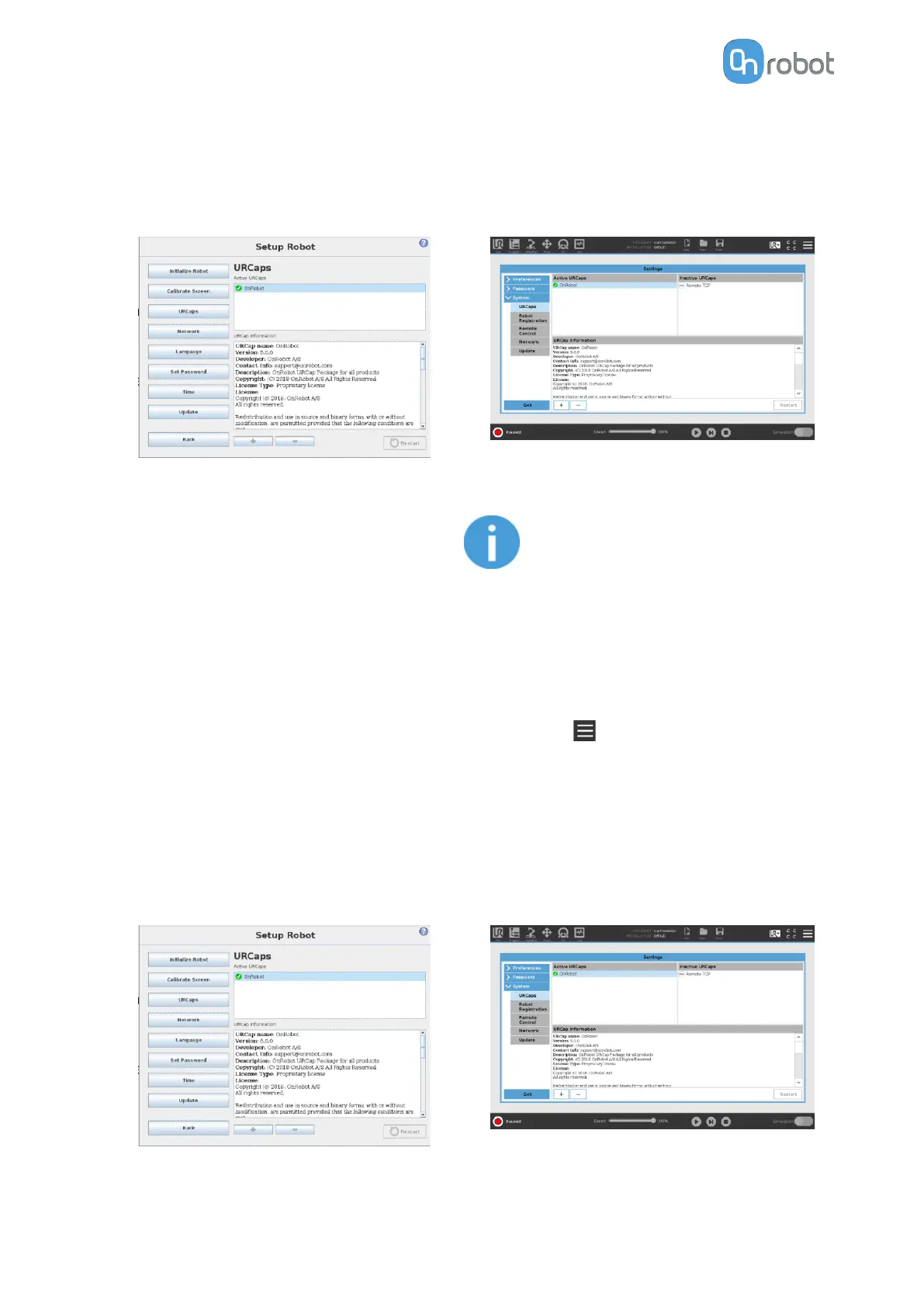 URCap installation please refer