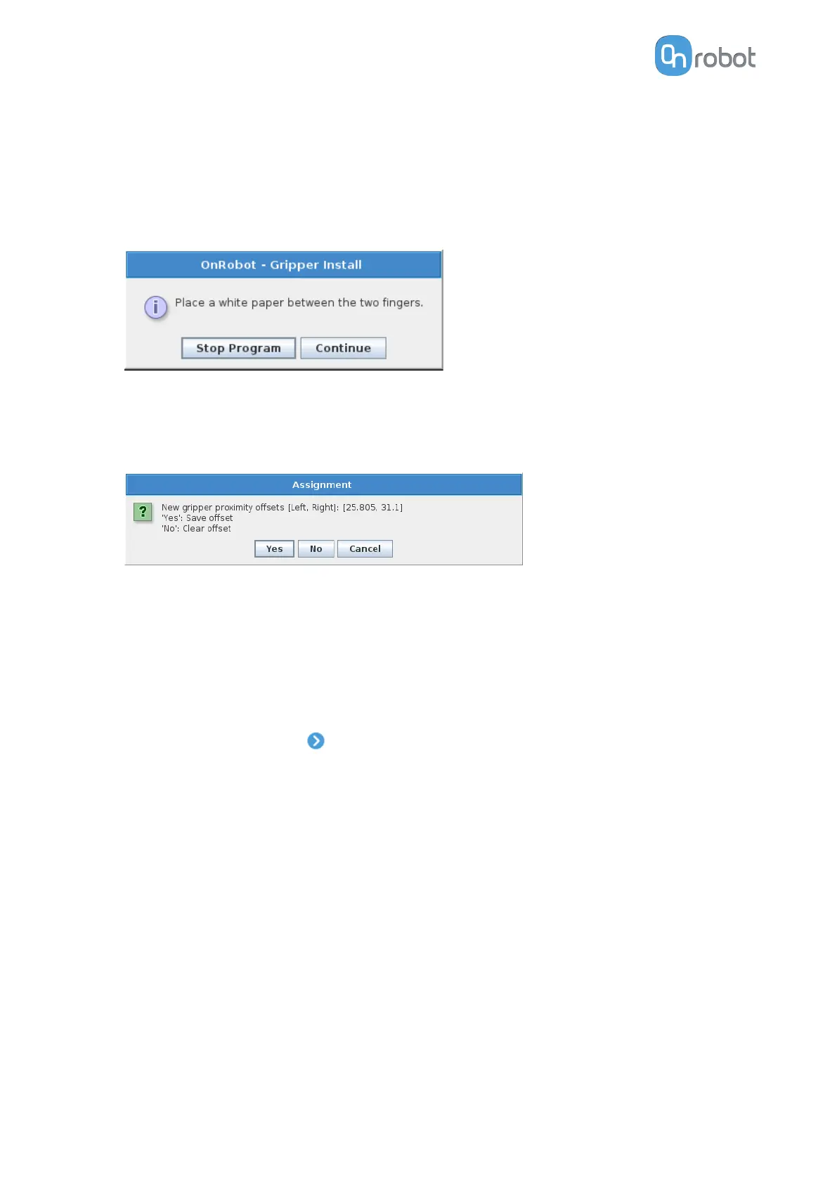 2. The gripper is opened (if it was closed) and a popup window will be shown.