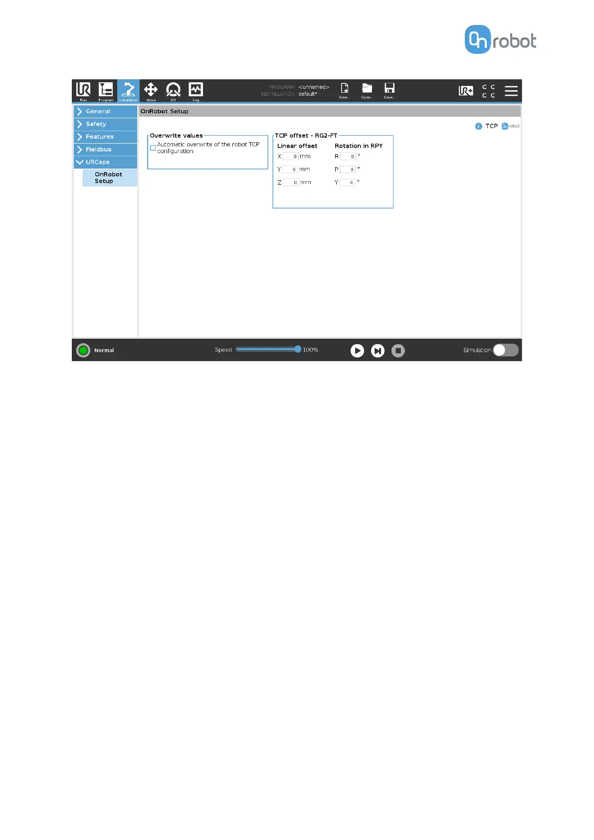 OnRobot device dependent calculated TCP.