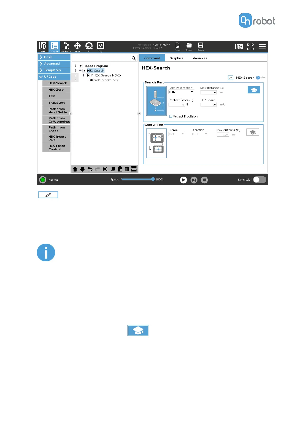 Max distance (D): The maximum distance that the tool is going to move during the search