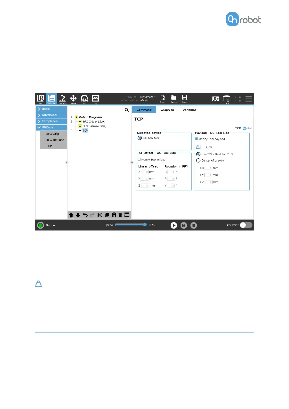 Use TCP oset for CoG: set the center of gravity of the workpiece at the active TCP position.
