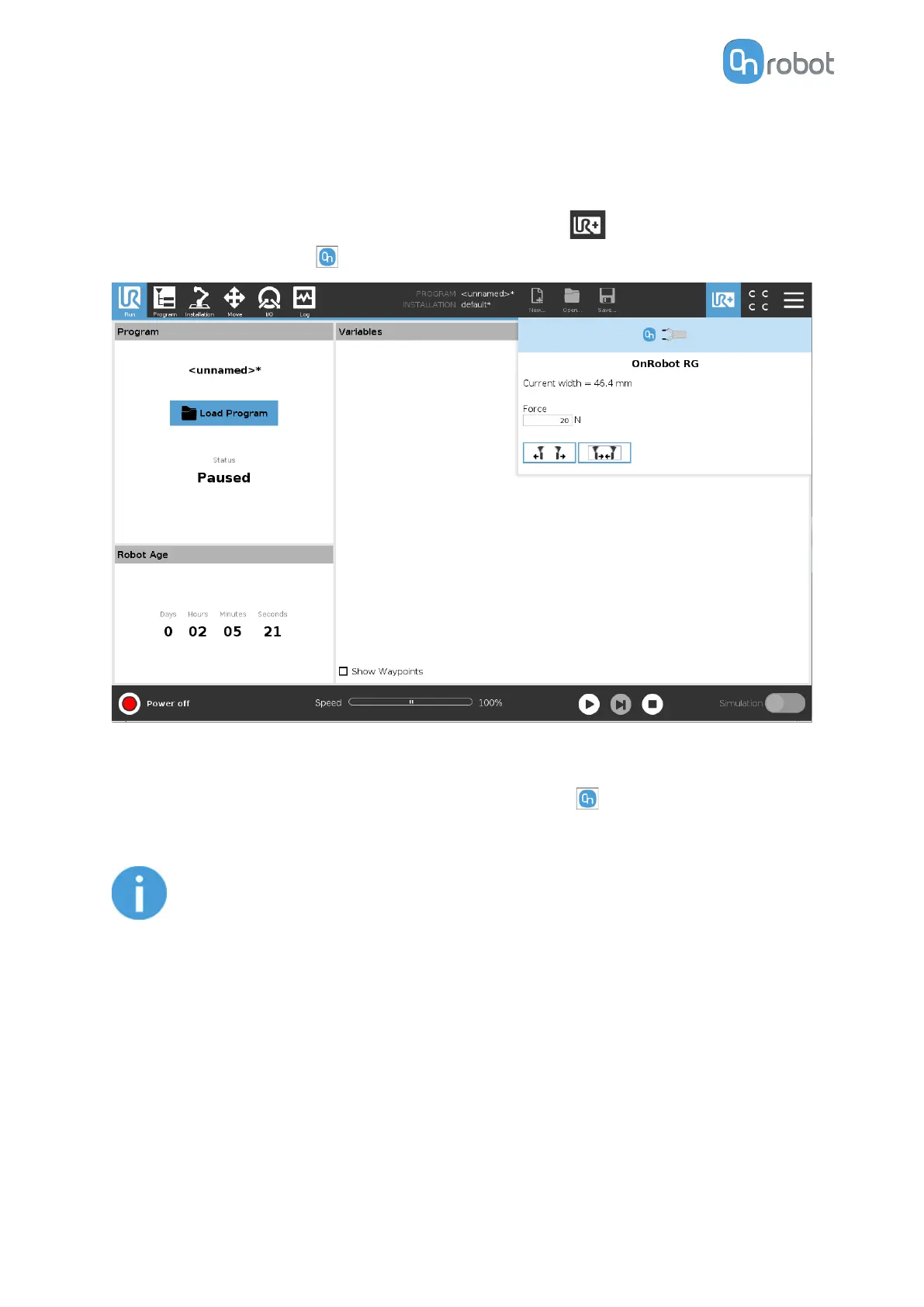 press on the OnRobot icon .