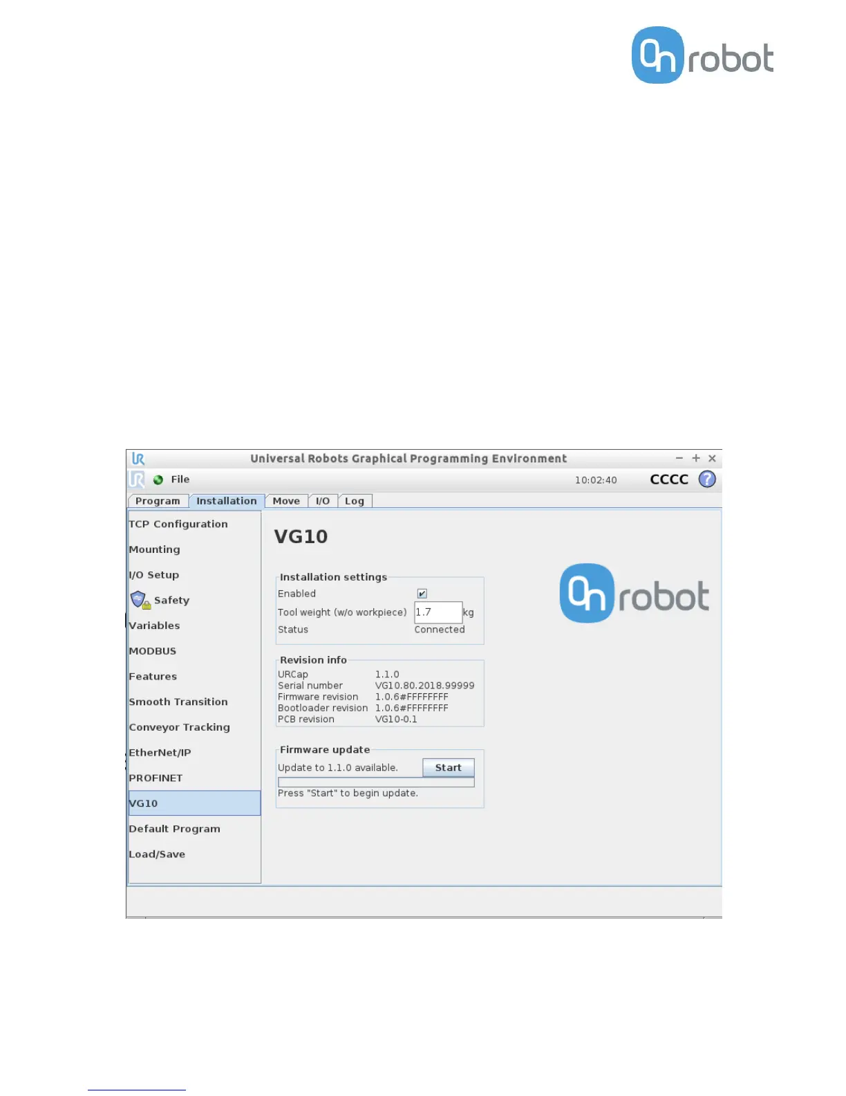 The VG10 URCap can be disabled per installation by unchecking the checkbox. This