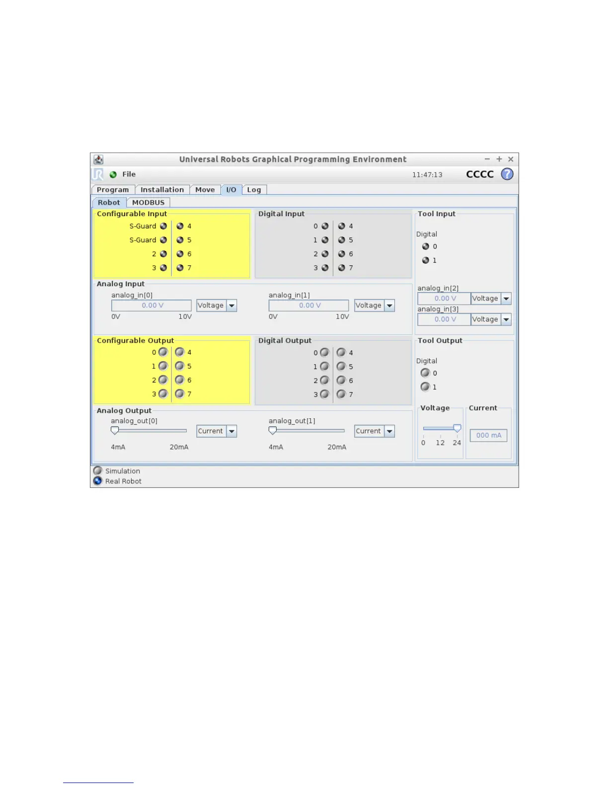 • TI1 = Tool_digital_input[1] = Vacuum present channel B (Vacuum > 40%)