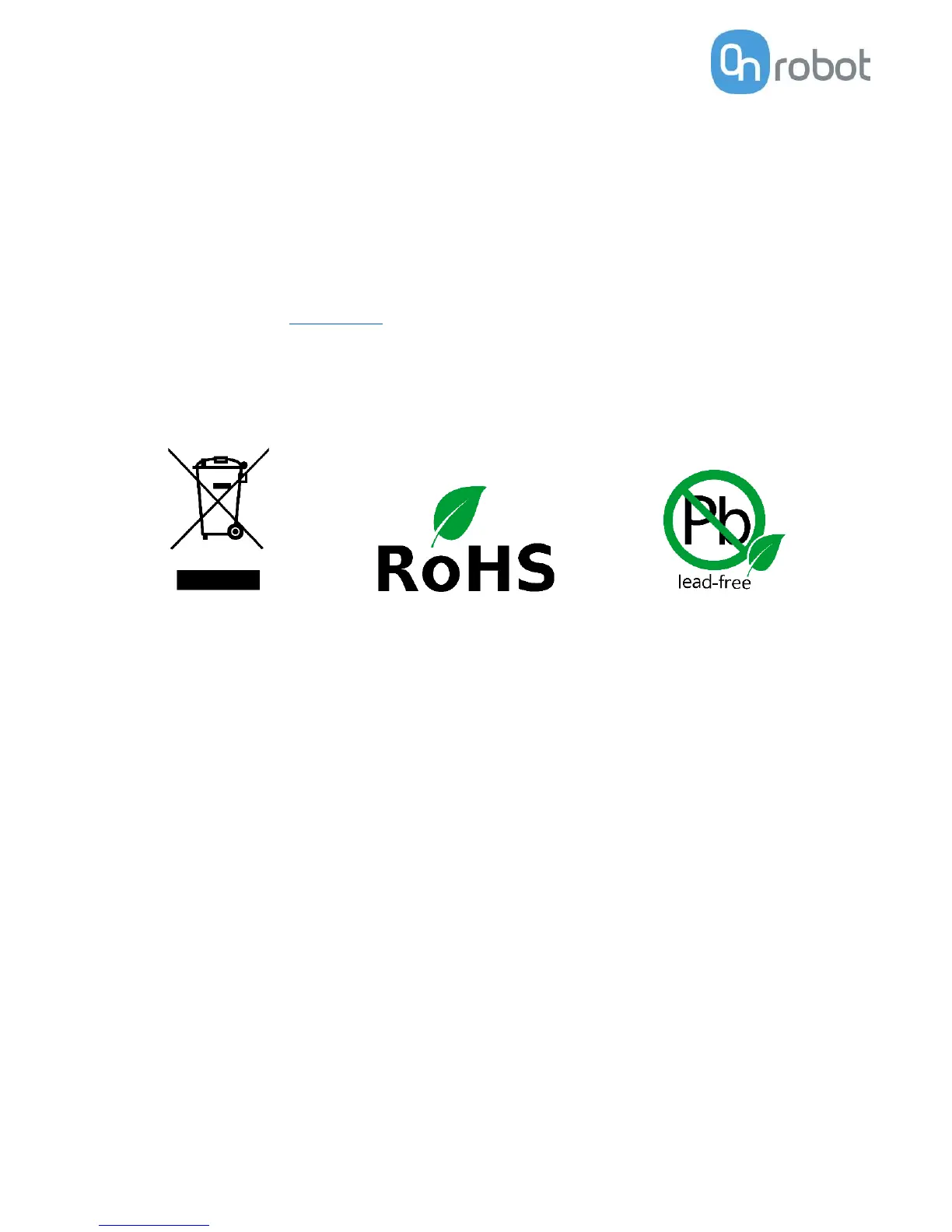 OnRobot A/S products must be disposed of in accordance with the applicable national