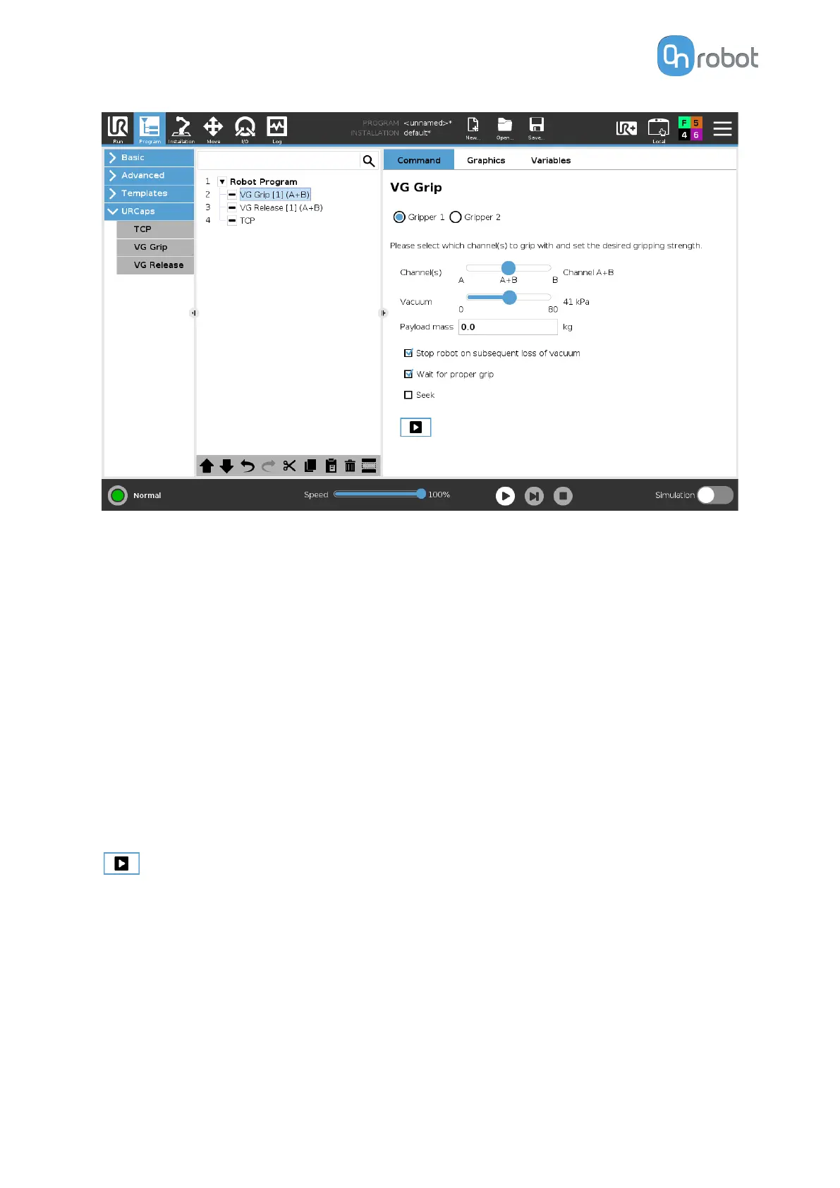buttons will select which one of the 2 grippers performs the action. In the robot program, the