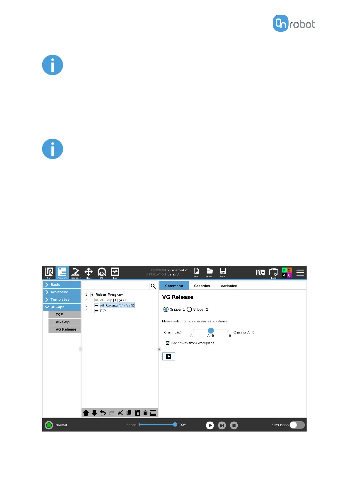 When any of the VG grippers is used without a HEX-E/H QC but used on an E-series controller