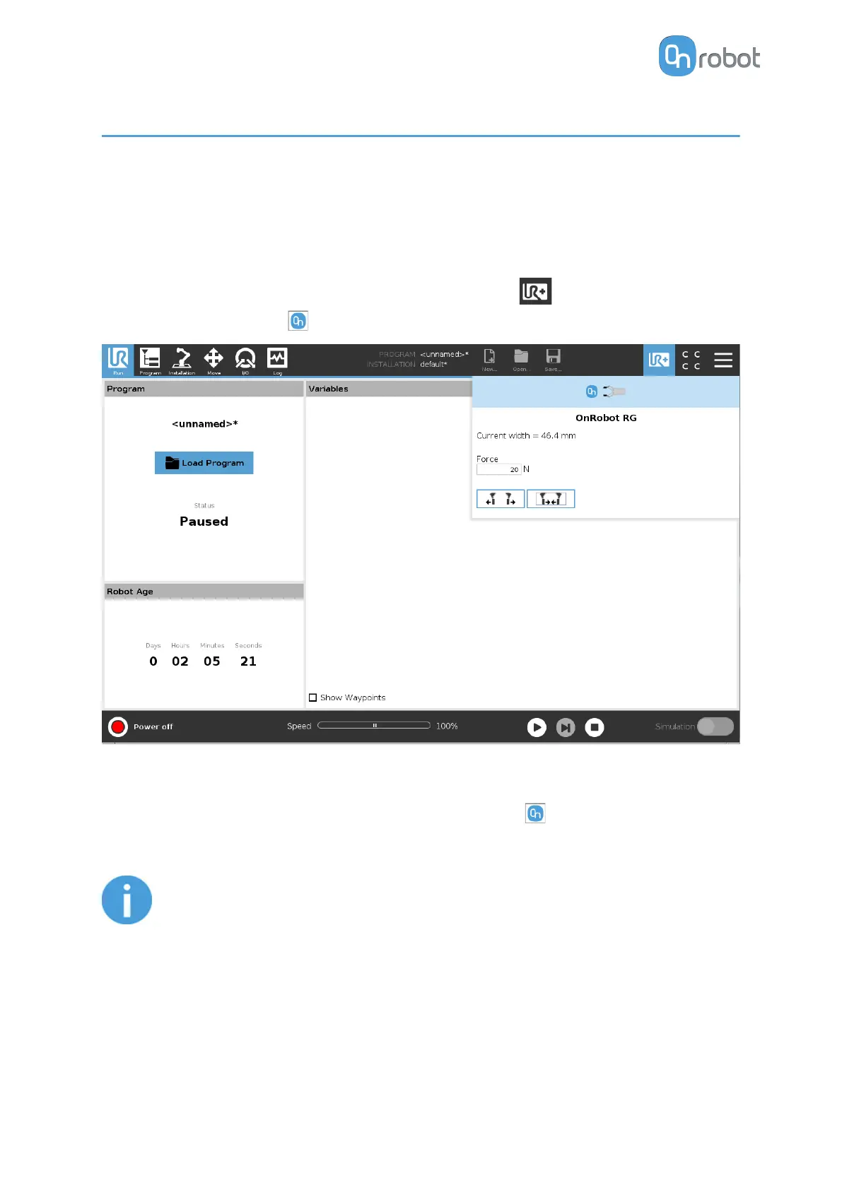 The way how the toolbar can be accessed is dierent on the e-Series and the CB3 UR robots,