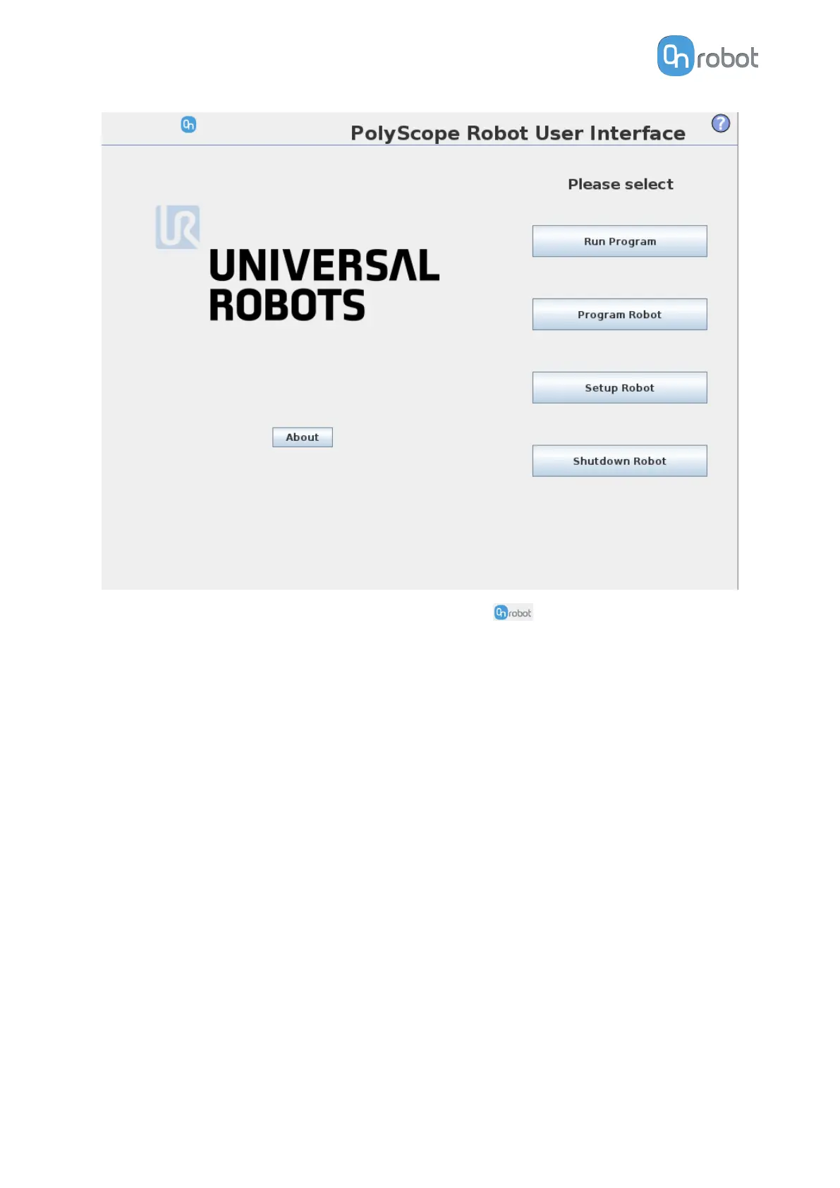 To enable/disable the toolbar, press on the OnRobot logo on the top right corner and