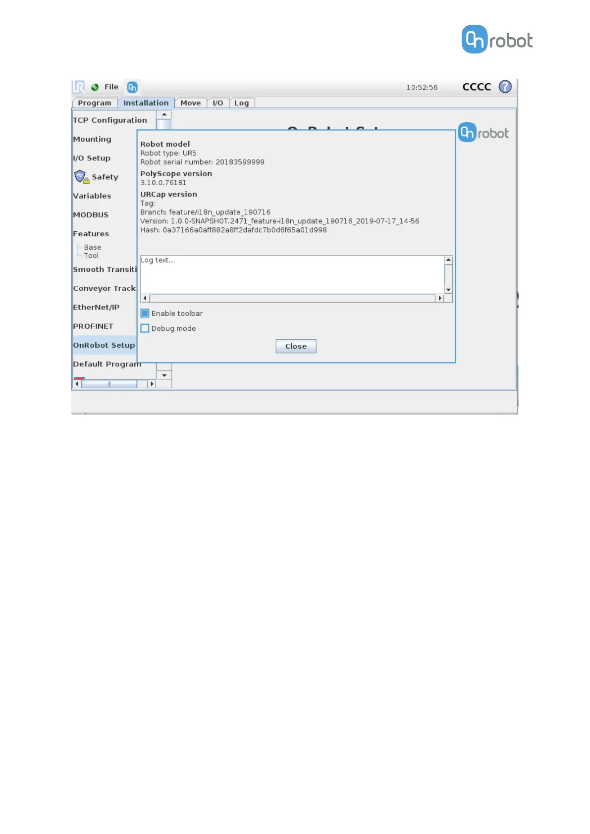 OnRobot VGC10 - 3 FG15 URCap Toolbar