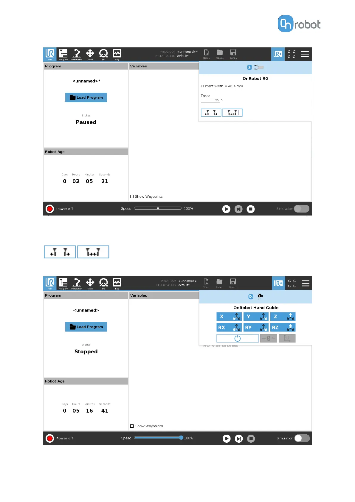 Current width: shows how wide the gripper is opened.