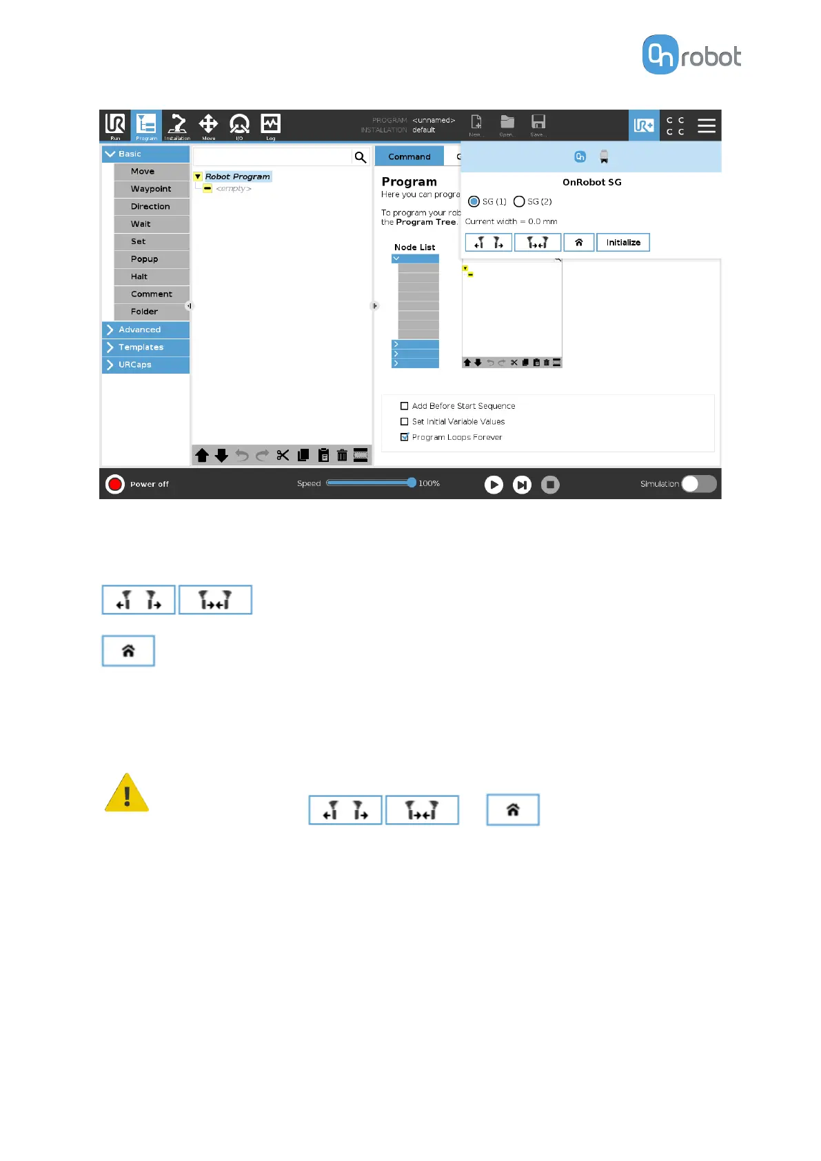 Initialize: Press here to initialize the gripper with the current tool. This button will only appear