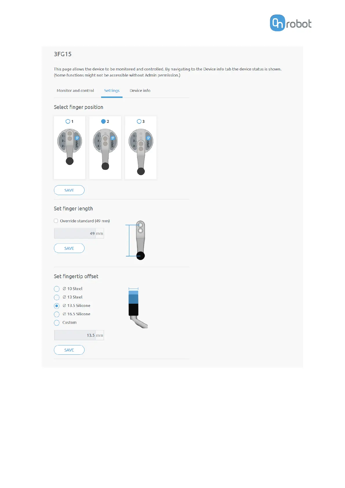 Select finger position - Select the mounted finger position and Save.