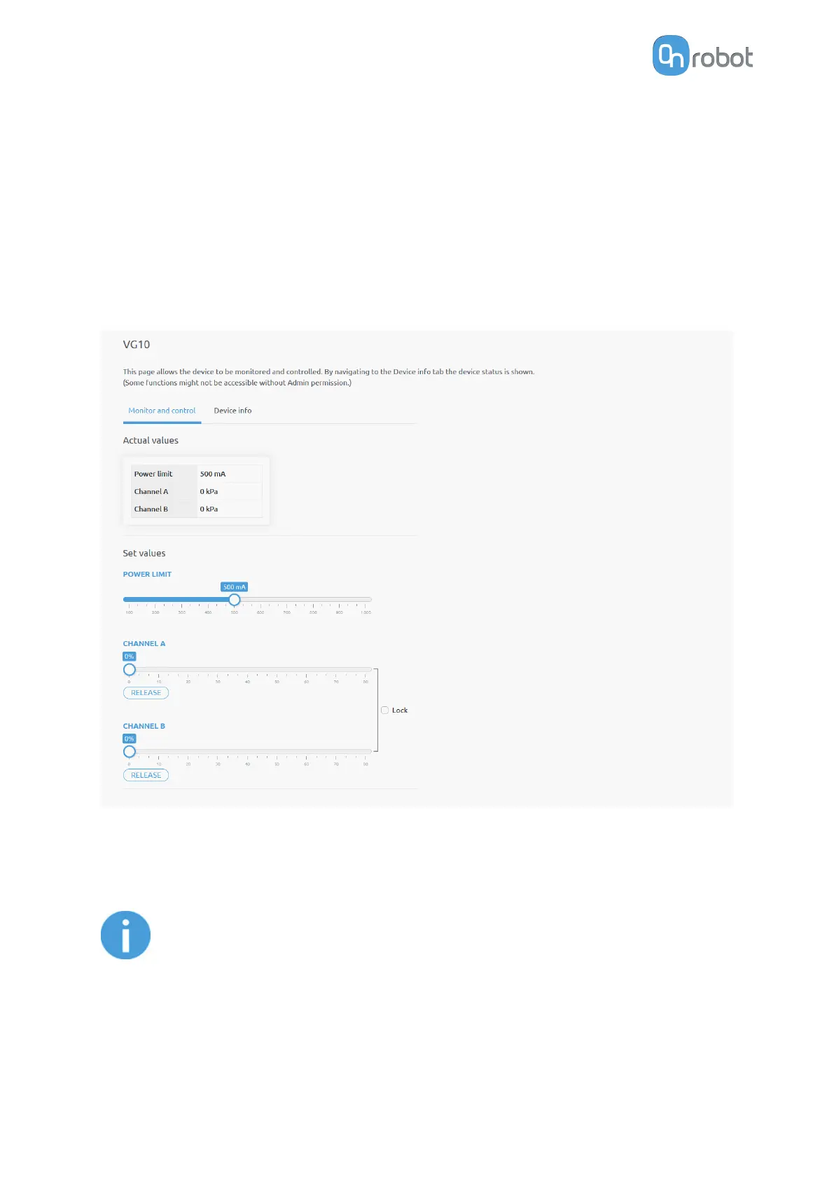 The actual vacuum level for Channel A and Channel B can be seen in percentage (in the