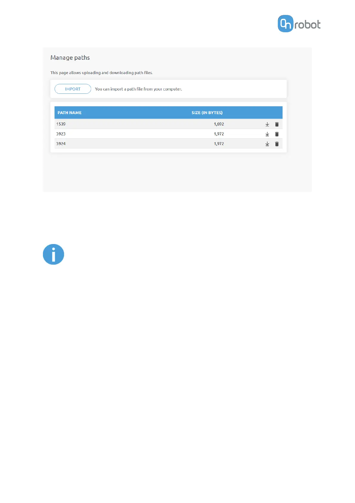 downloaded as a .ofp file or permanently deleted to free up the list if a path is not needed