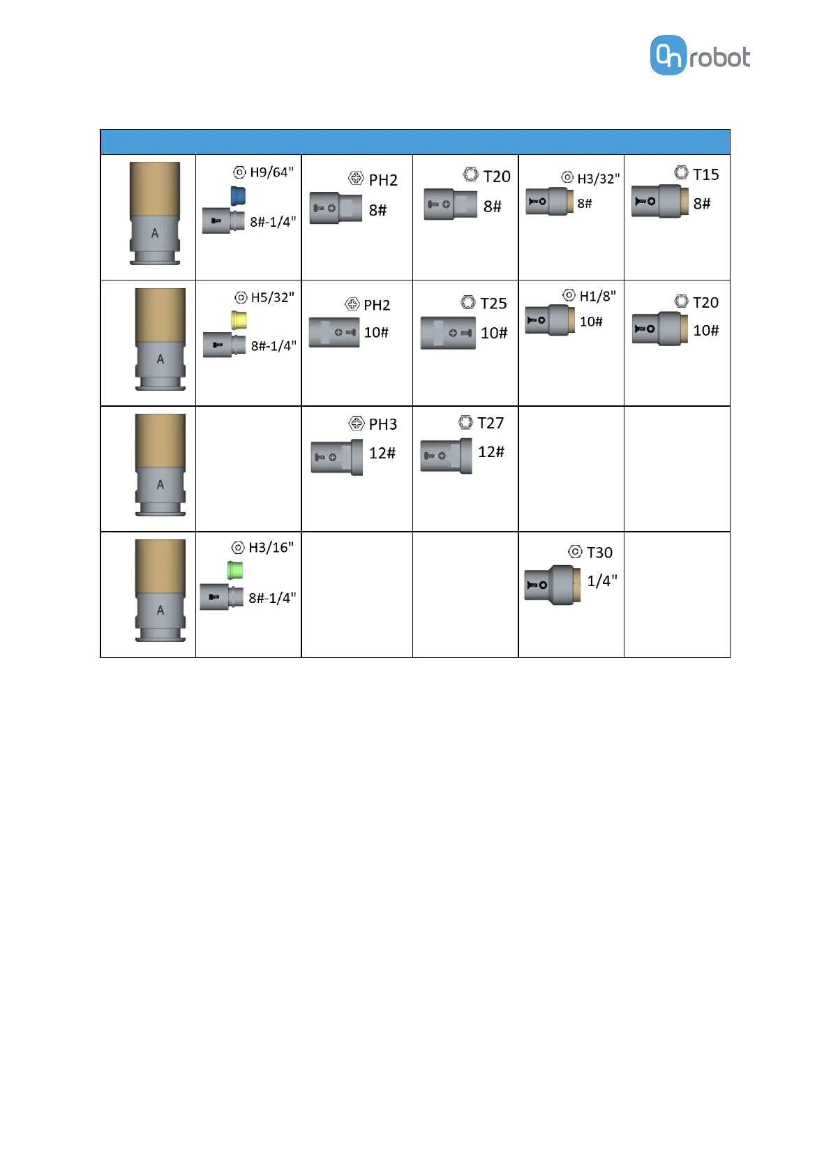 Screw-bit System based on the table in section Items Needed Depending on Screw Type