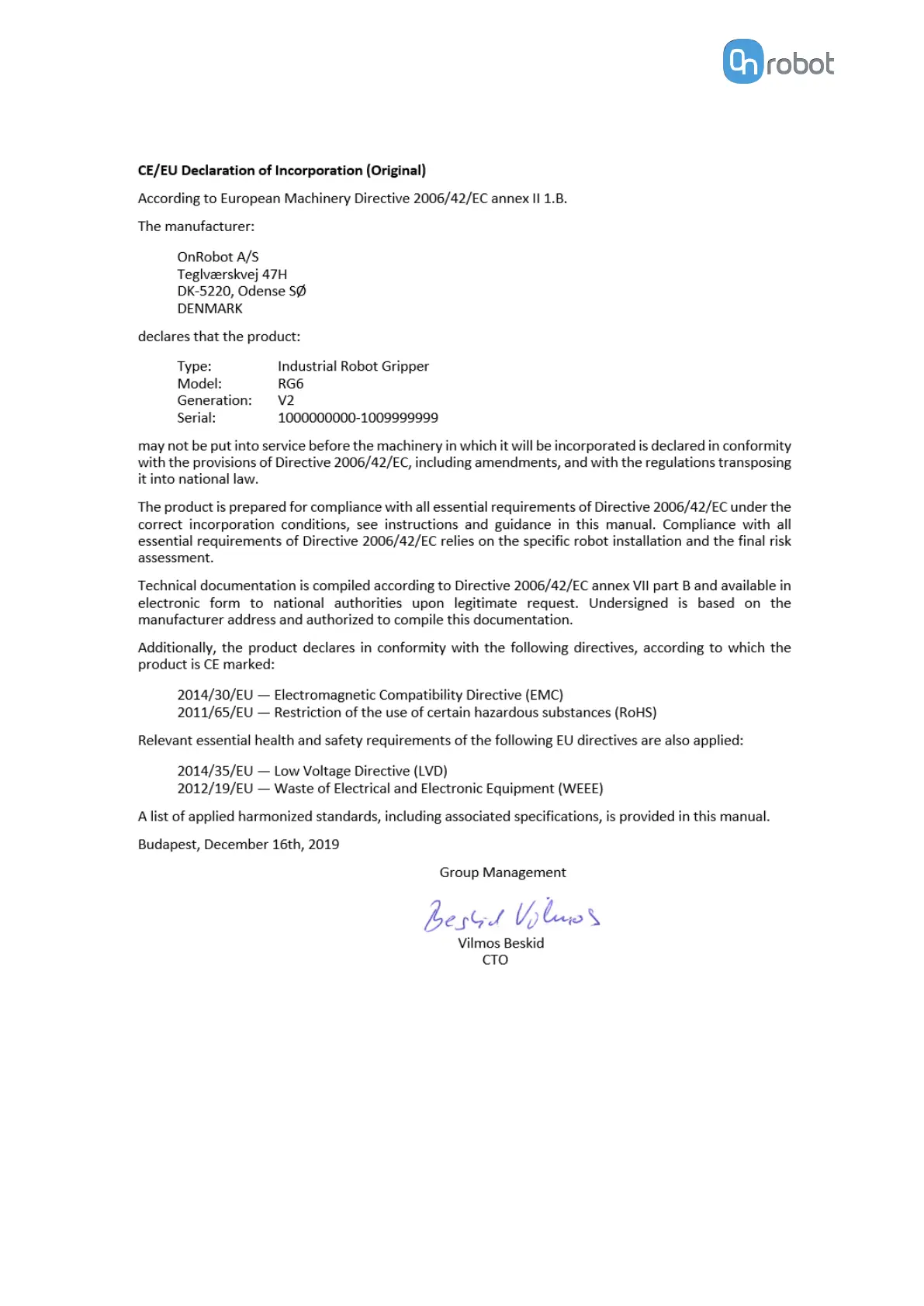Other manuals for OnRobot VGC10