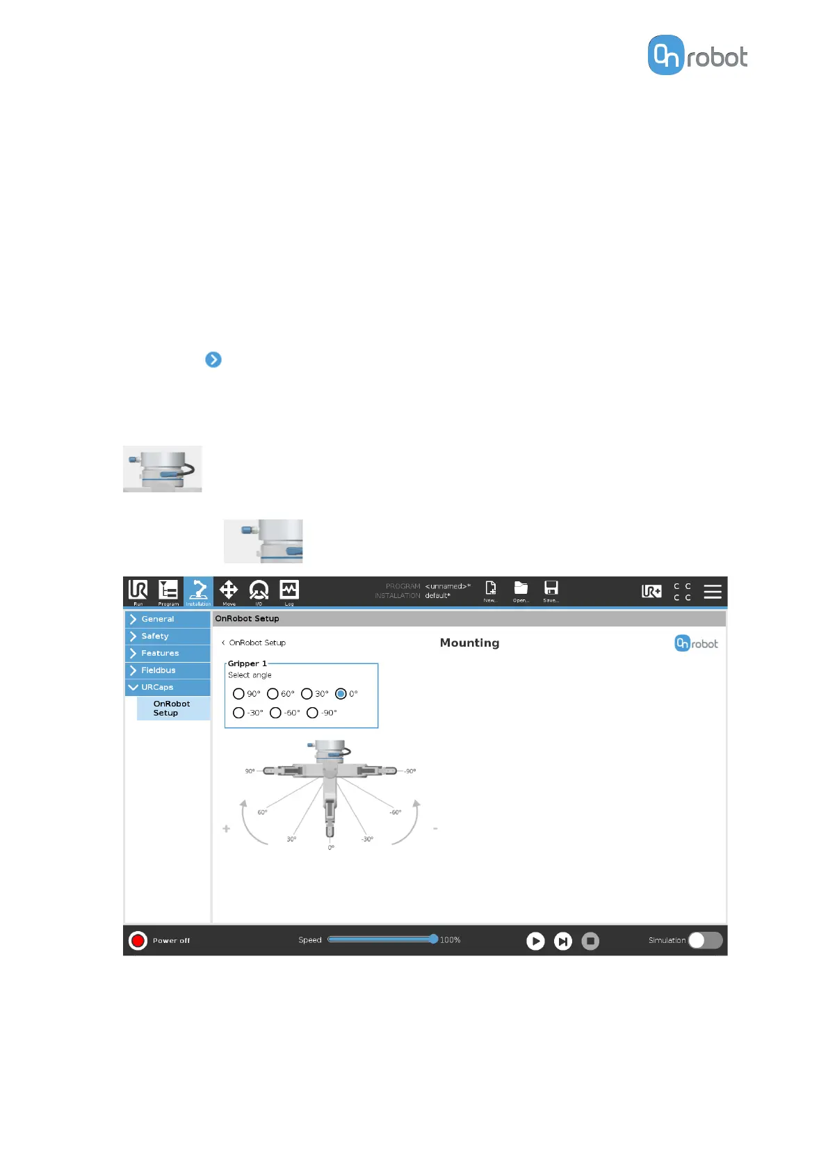 2. Select the angle the gripper is mounted with (positive angle towards the Quick Changer