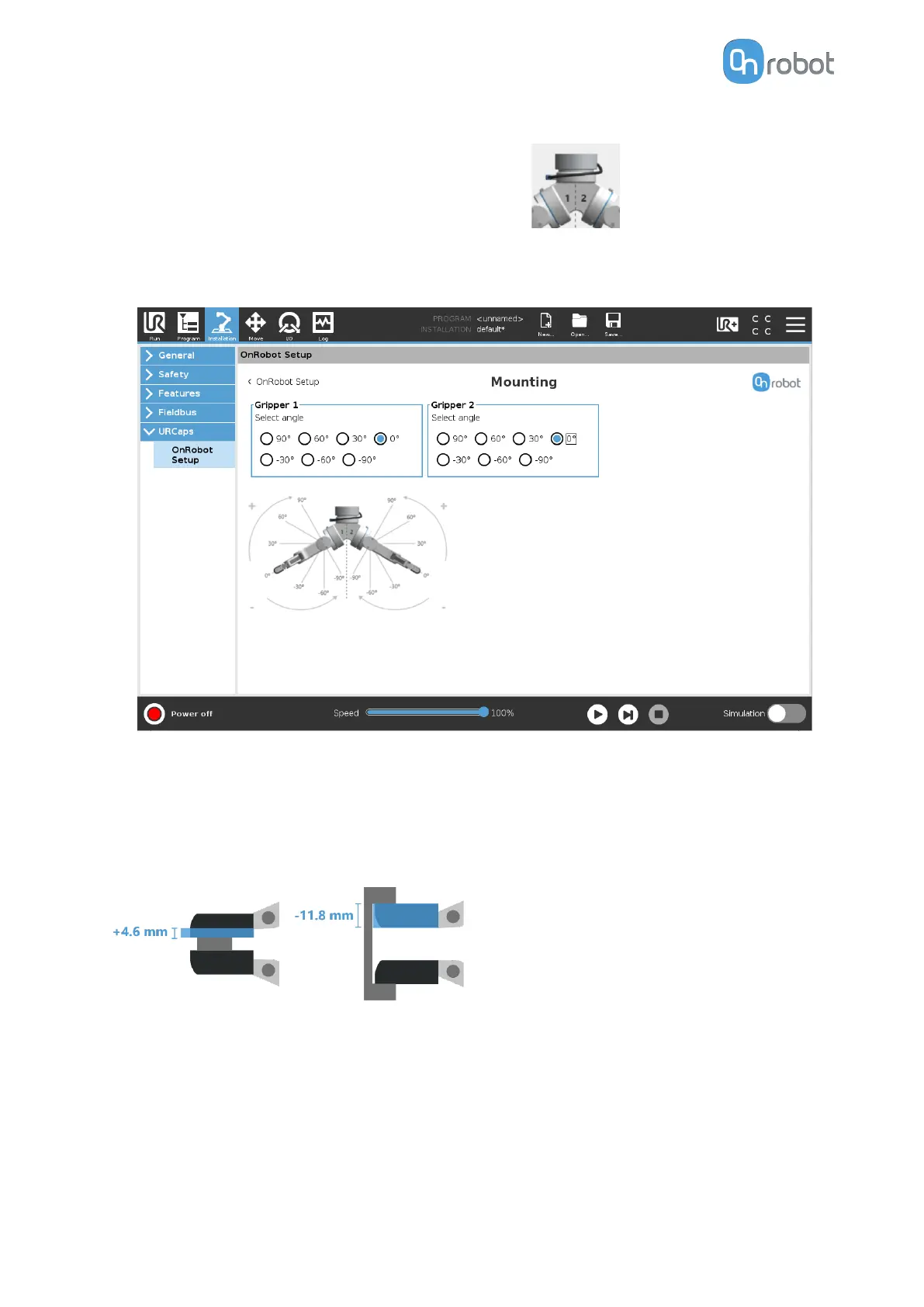 2. Select the angle of one gripper and then select the angle of the other gripper (positive