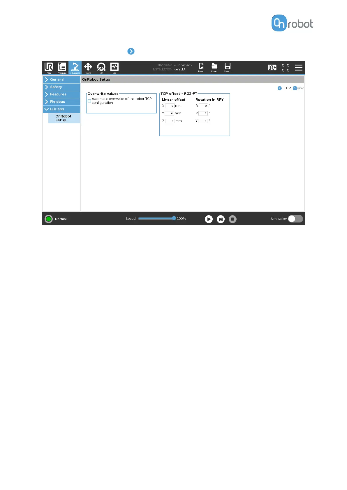 Automatic overwrite of the robot TCP configuration: when checked, the UR's TCP
