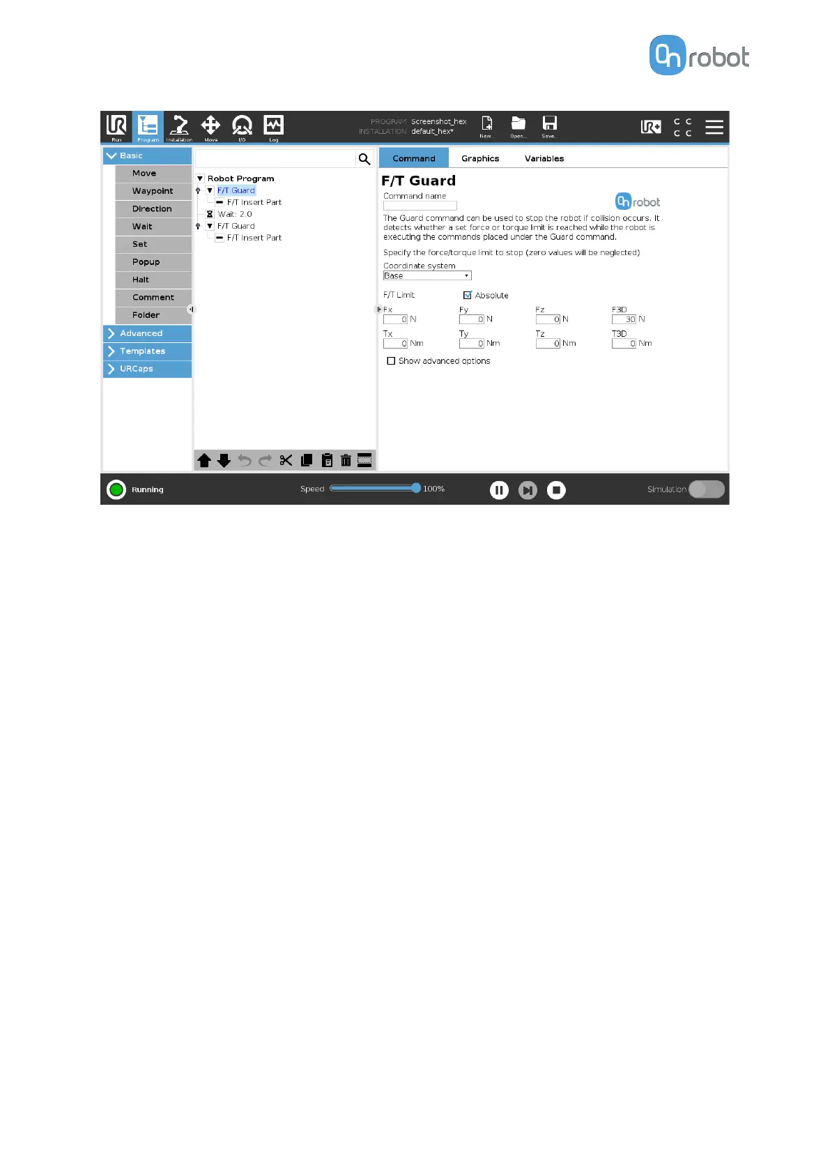 reading. It can be set to Base or Tool (according to the UR’s reference frames).