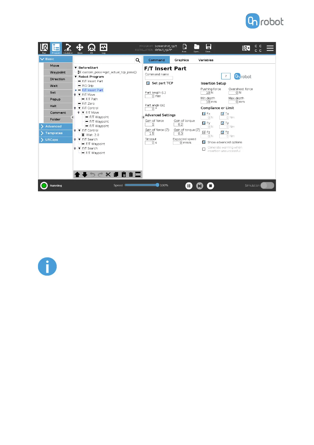 checked a limit can be set for the force or torque, that if reached, stops the command.