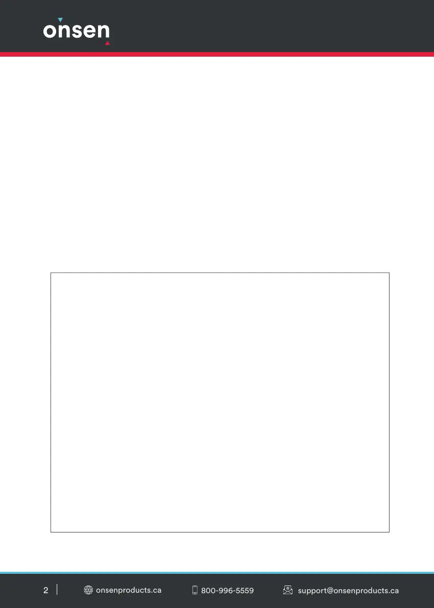 Onsen at support@onsenproducts.ca or 800-996-5559.