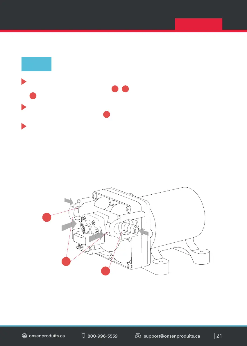 raccords d’entrée et de sortie , de la pompe et enfoncez les clips